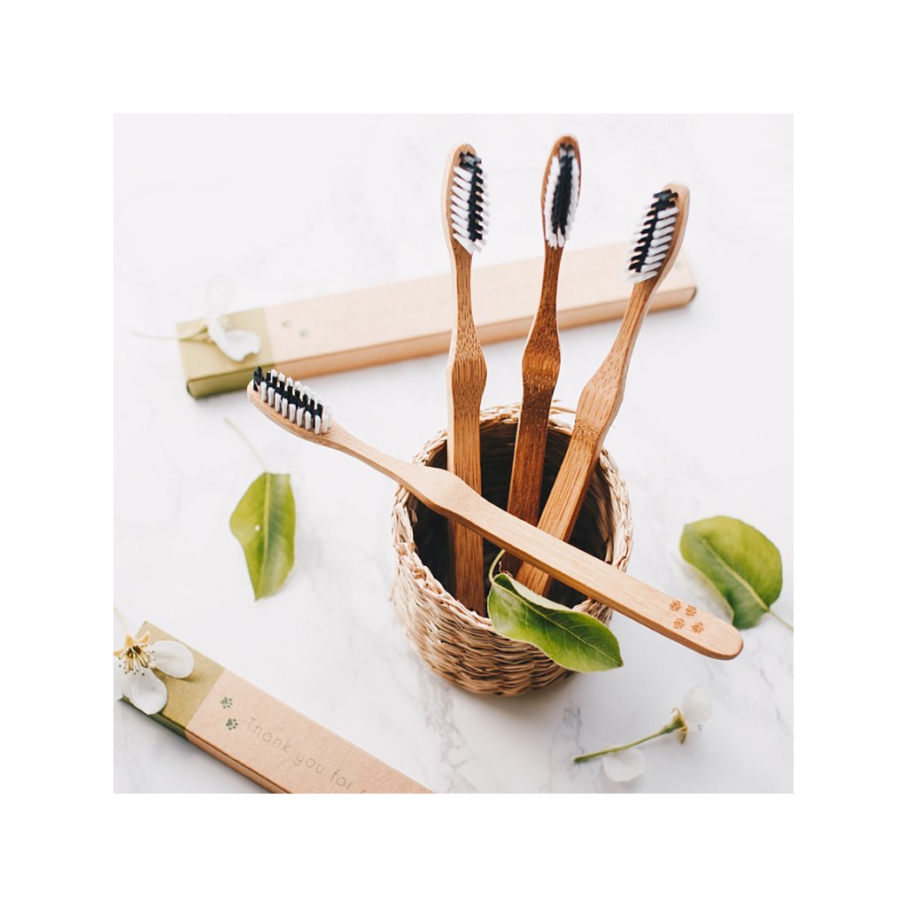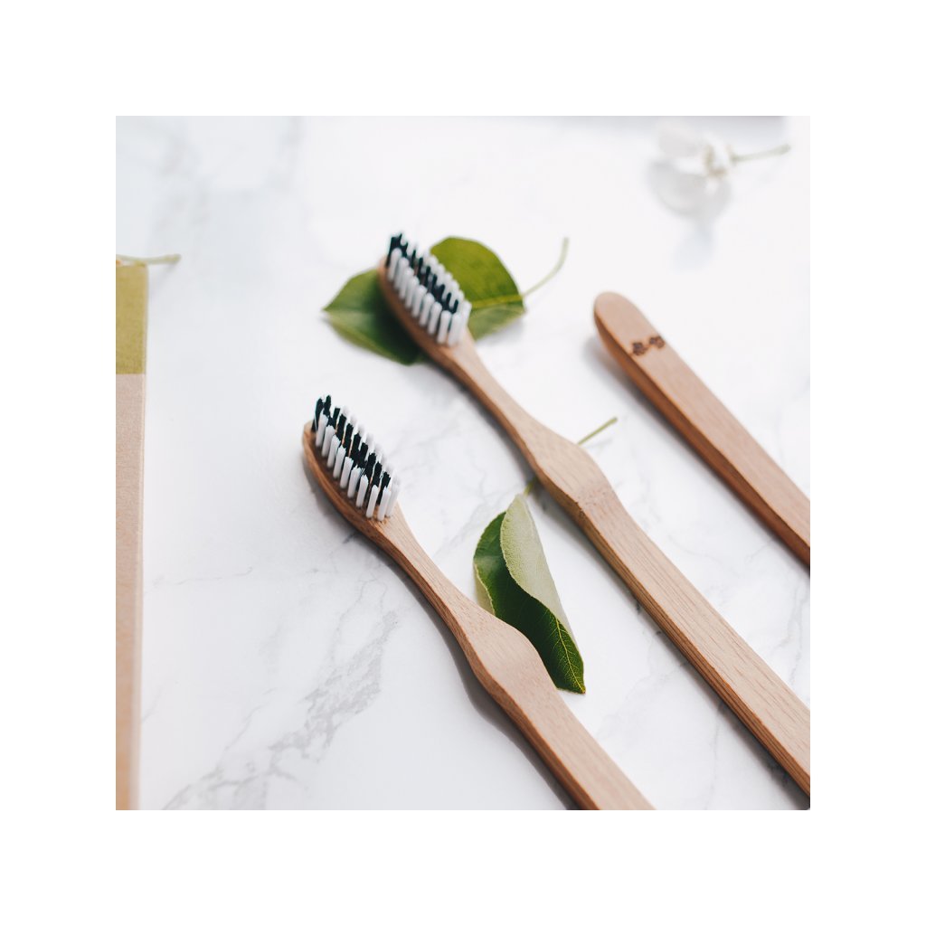 Ergonomická drevená rukoväť je vyrobená z organického bambusu. Po použití, z kefky jednoducho kliešťami vytrhajte štetinky, bambusovú rukoväť naštiepkujte na menšie kúsky a môžete ju skompostovať. Štetinky s tvrdosťou medium sú vyrobené z nylonu bez BPA. Naviac je do nich pridané aktívne uhlie, ktoré pôsobia ako prírodný bieliaci prostriedok na zuby.