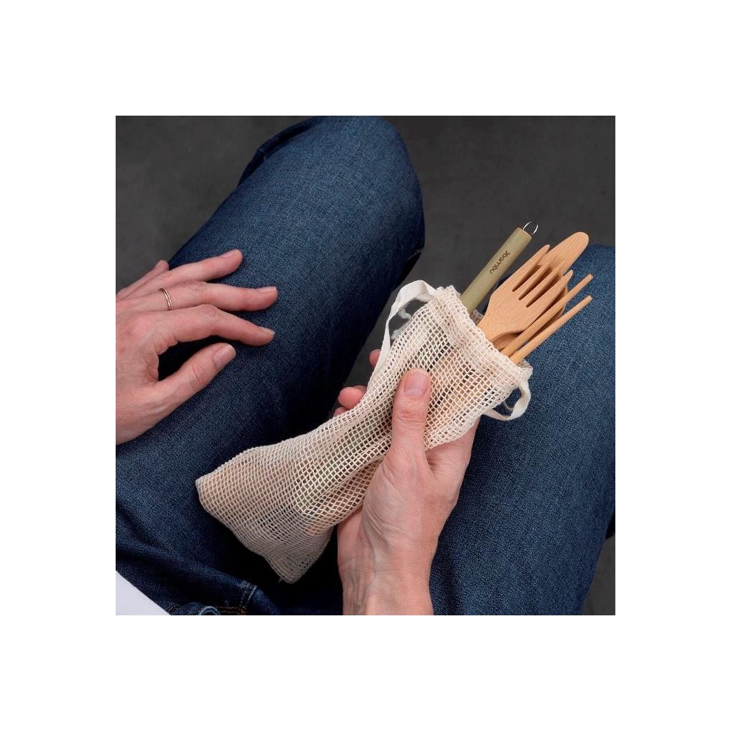Kompletná sada príboru z organického materiálu na vaše cesty okolo sveta alebo na každý deň do kabelky.