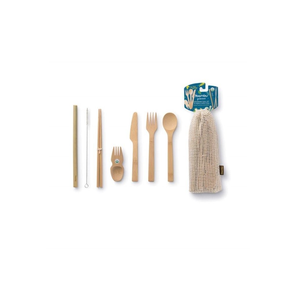| Balenie obsahuje: | lyžica, vidlička, nôž, lyžičkovidlička, slamka, kefka na slamku, paličky na čínu |