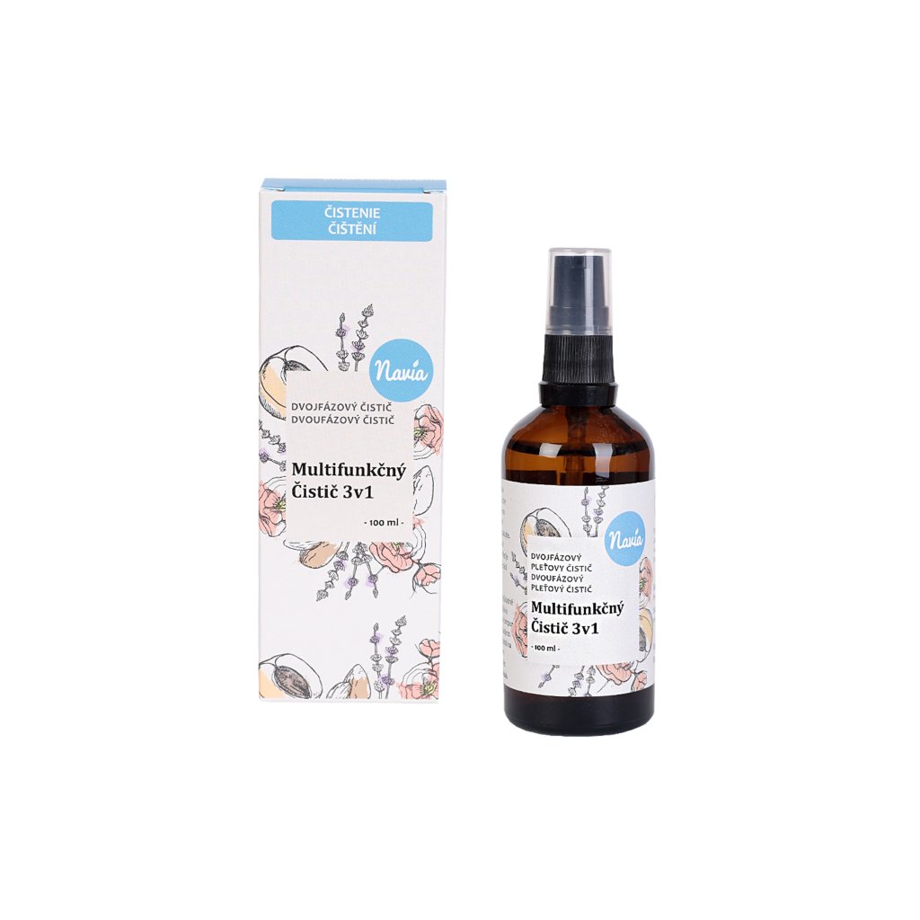 Multifunkčný dvojfázový čistič pre rýchle a pohodlné odličovanie, zložený z olejovej a vodnej fázy. Bez problémov odstraňuje kozmetiku a i bežné každodenné nečistoty. Tento odličovač okrem iného tiež pokožku hydratuje, regeneruje, tonizuje a poľahky odstraňuje i vodeodolný make-up. Olejová fáza je založená na báze mandľového oleja s upokojujúcimi účinkami, ktorý tiež spomaľuje starnutie pokožky, zosvetľuje tmavé škvrny a zmierňuje svrbenie. Ďalšou zložkou je olej z marhuľových jadier. Pomáha pri ekzémoch, akné, zápaloch a podporuje tvorbu kolagénu. Vodná fáza sa skladá z kvetinovej vody z Damašskej Ruže. Tá pokožku hydratuje, udržiava jej pH, regeneruje ju a upokojuje. Ďalej sa skladá z kvetinovej levanduľovej vody, ktoré regeneruje, zmierňuje svrbenie a zvláčňuje pleť. Čistič obsahuje tiež mnohé ďalšie prospešné zložky, vďaka ktorým sa na odličovanie pleti budete odteraz tešiť!