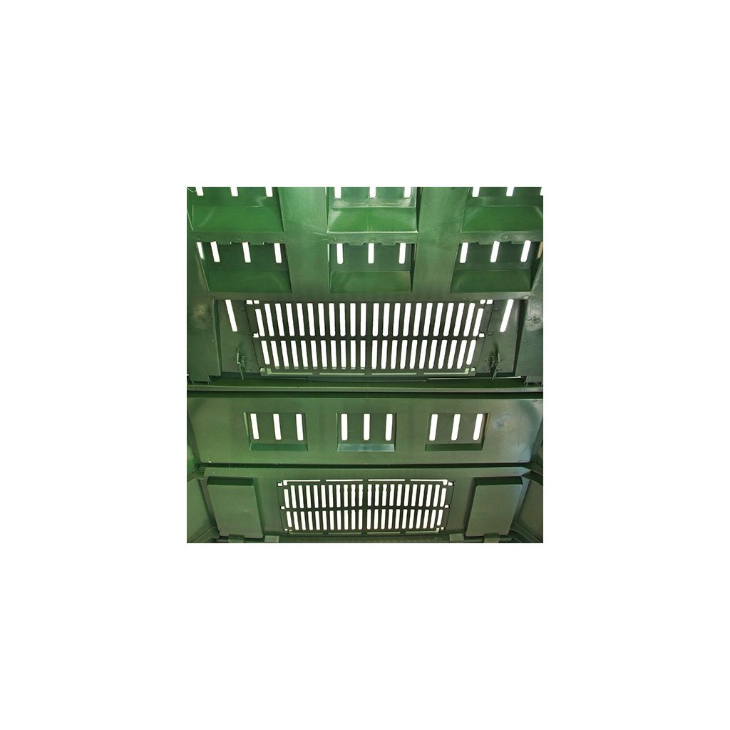 Prístup vzduchu do kompostéra je zabezpečený 3D prevzdušňovacími otvormi. Zároveň sa nimi do kompostu dostane aj primerané množstvo dažďovej vody, ktorá spolu so vzduchom prispieva k správnej rýchlosti kompostovania. V spodnej časti kompostéra JRK HOBBY 400 zelený sa nachádzajú dvierka na dvoch protiľahlých stranách. Dvierka umožňujú pohodlnú manipuláciu s hotovým kompostom. K obsahu kompostéra vedie jednoduchý prístup cez vrchné veko upevnené na kovových pántoch.